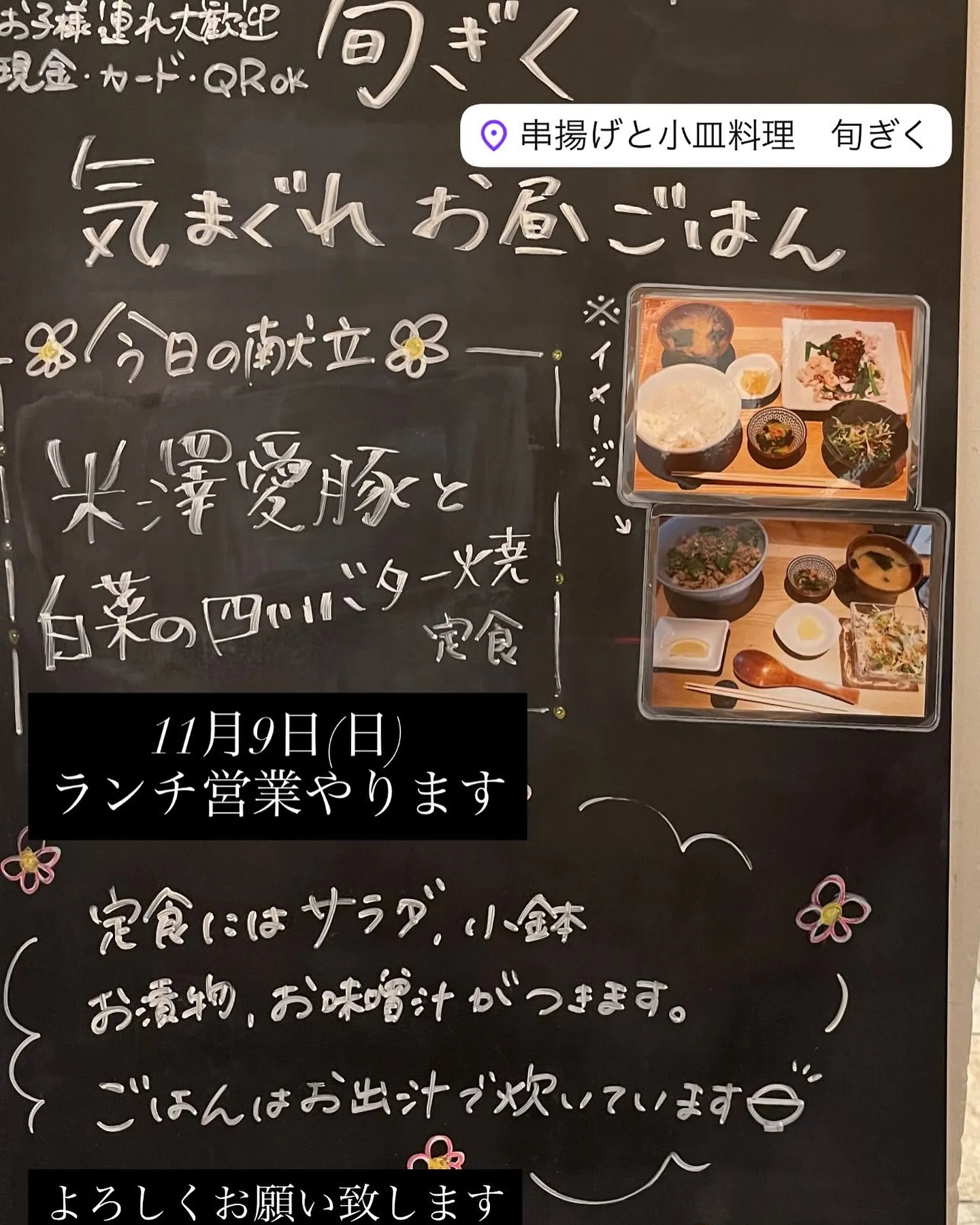 11月9日(日)ランチ営業やります 2025/11/09 11月9日(日)ランチ営業やります 米澤愛豚と白菜の四川バター焼き定食 税込1,200円 お電話でのご予約も承っております よろしくお願い致します