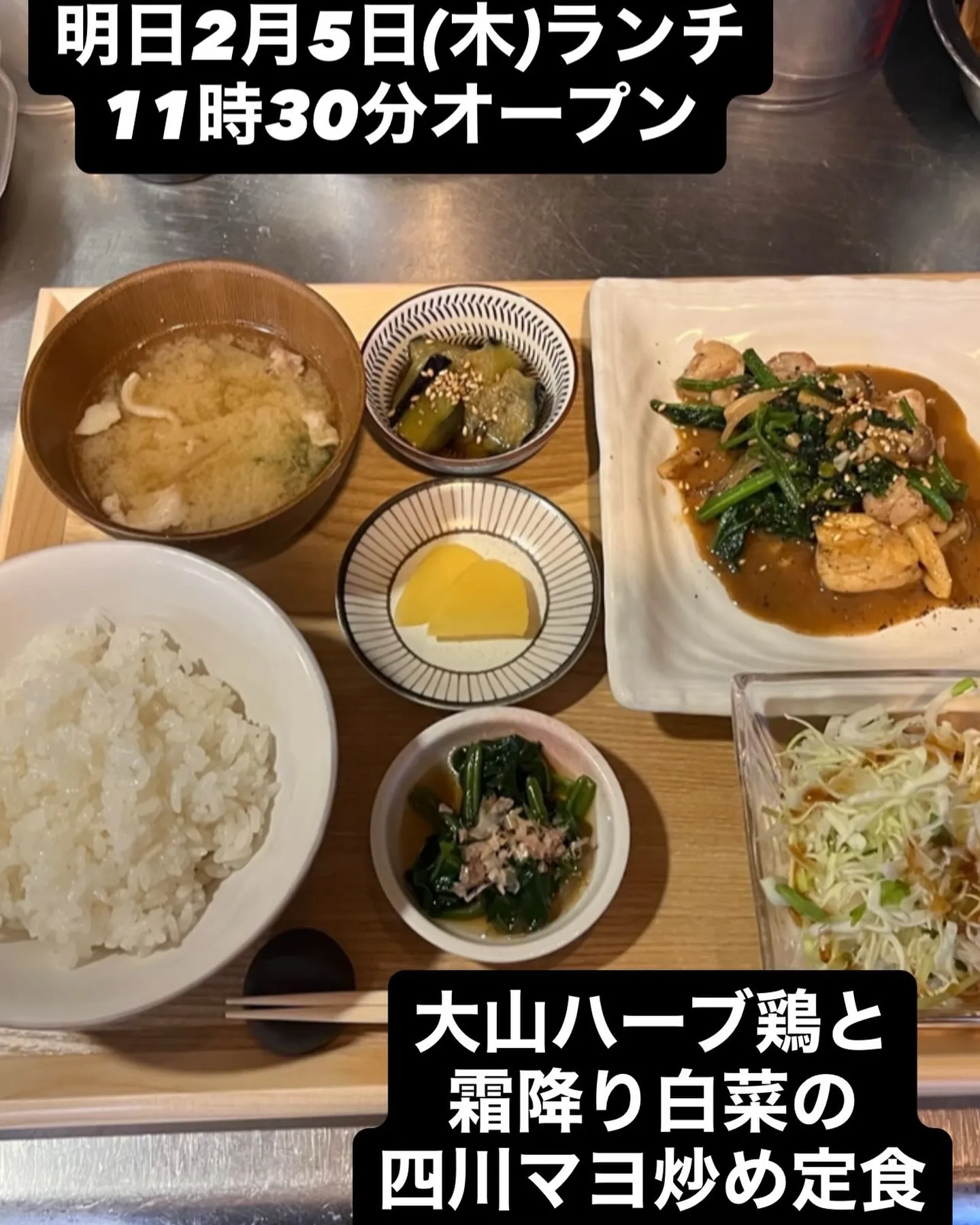 大山ハーブ鶏と霜降り白菜の四川マヨ炒め定食