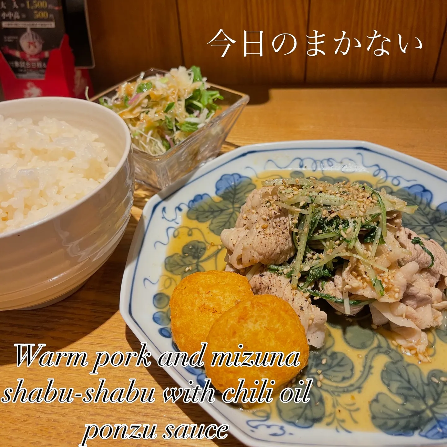 和豚と京水菜の温しゃぶ ラー油ポン酢 おまけナゲット 今日も1日お疲れ様でした