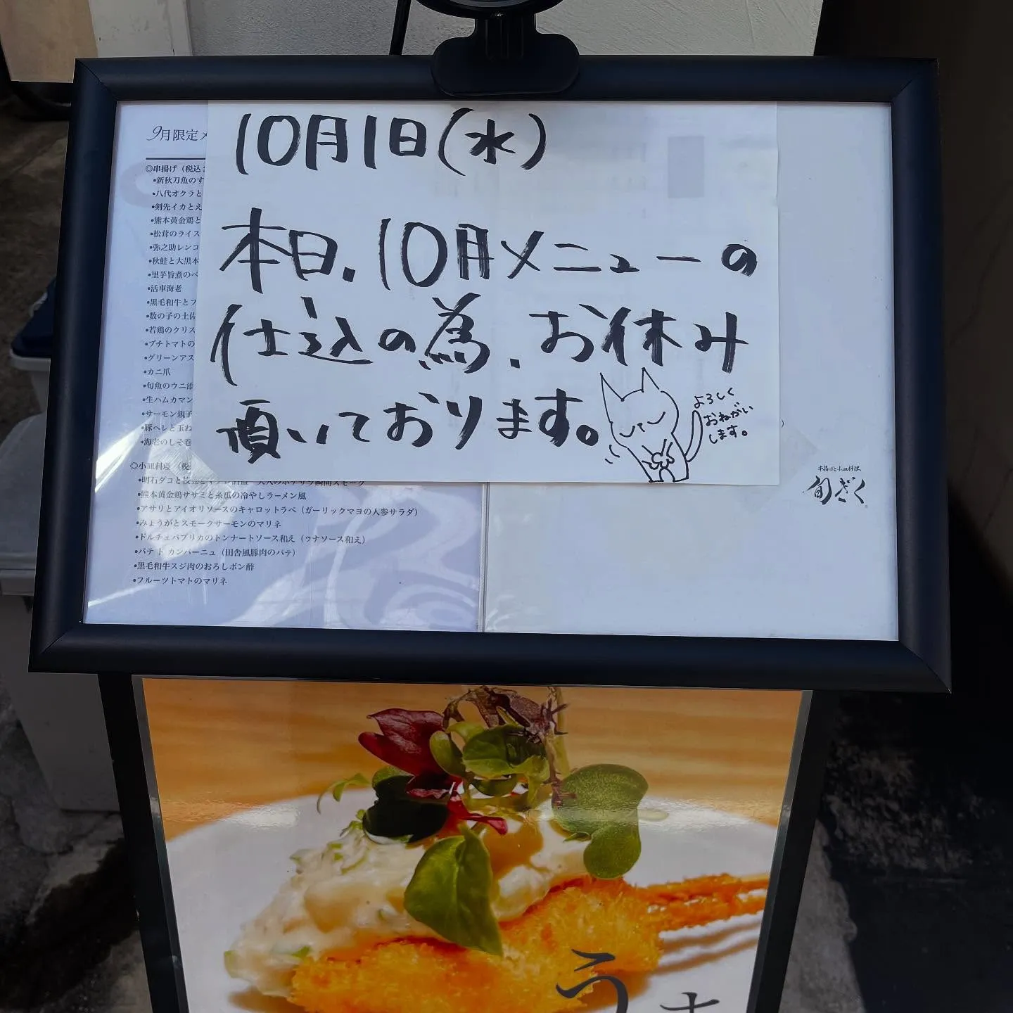 10月メニュー誠意仕込み中 10月メニュー誠意仕込み中いつもご愛顧いただき、ありがとうございます本日10月1日(水)は仕込みの為お休みをいただいておりますご足労なきようお願い致します.「串揚げと小皿料理旬ぎく」•アクセス地下…