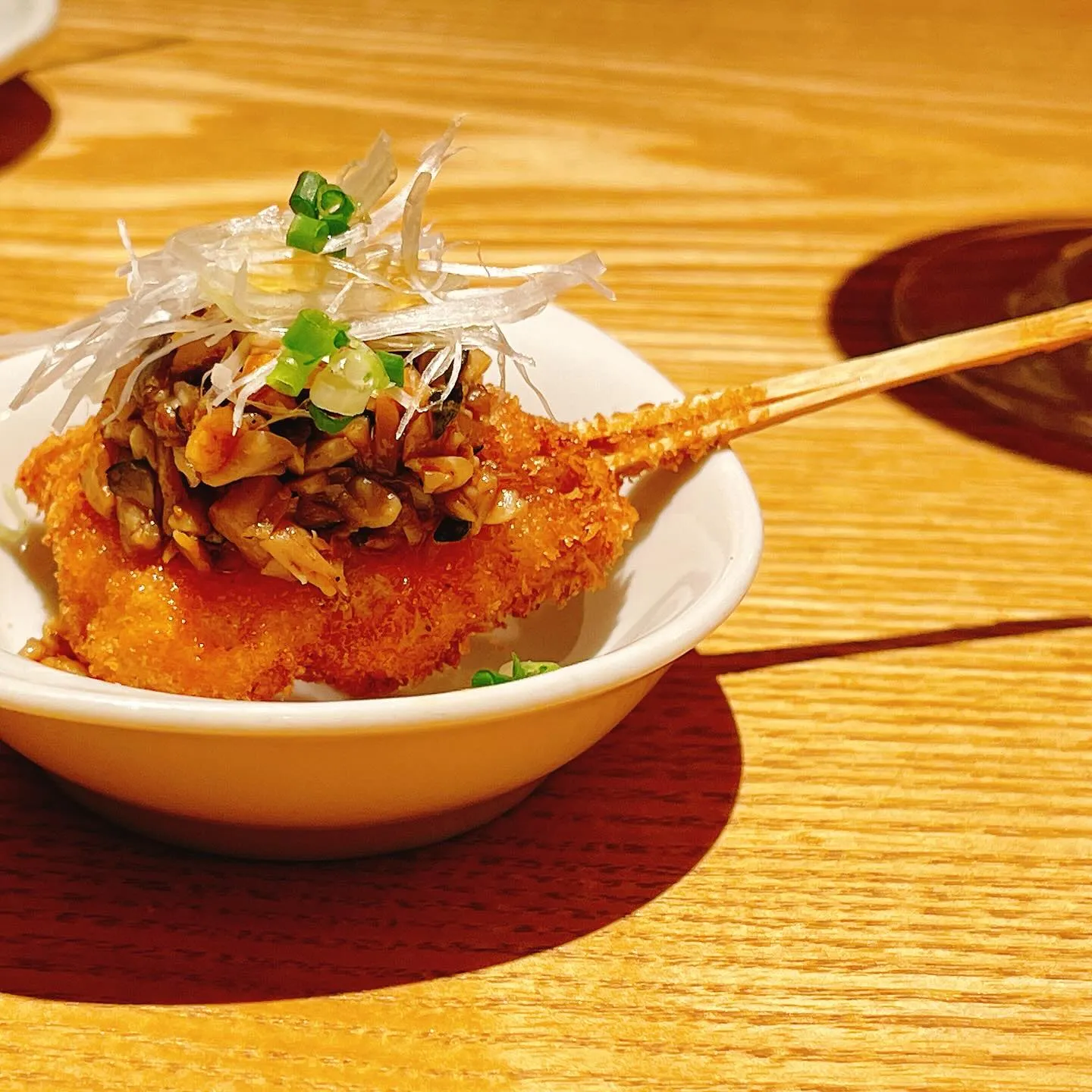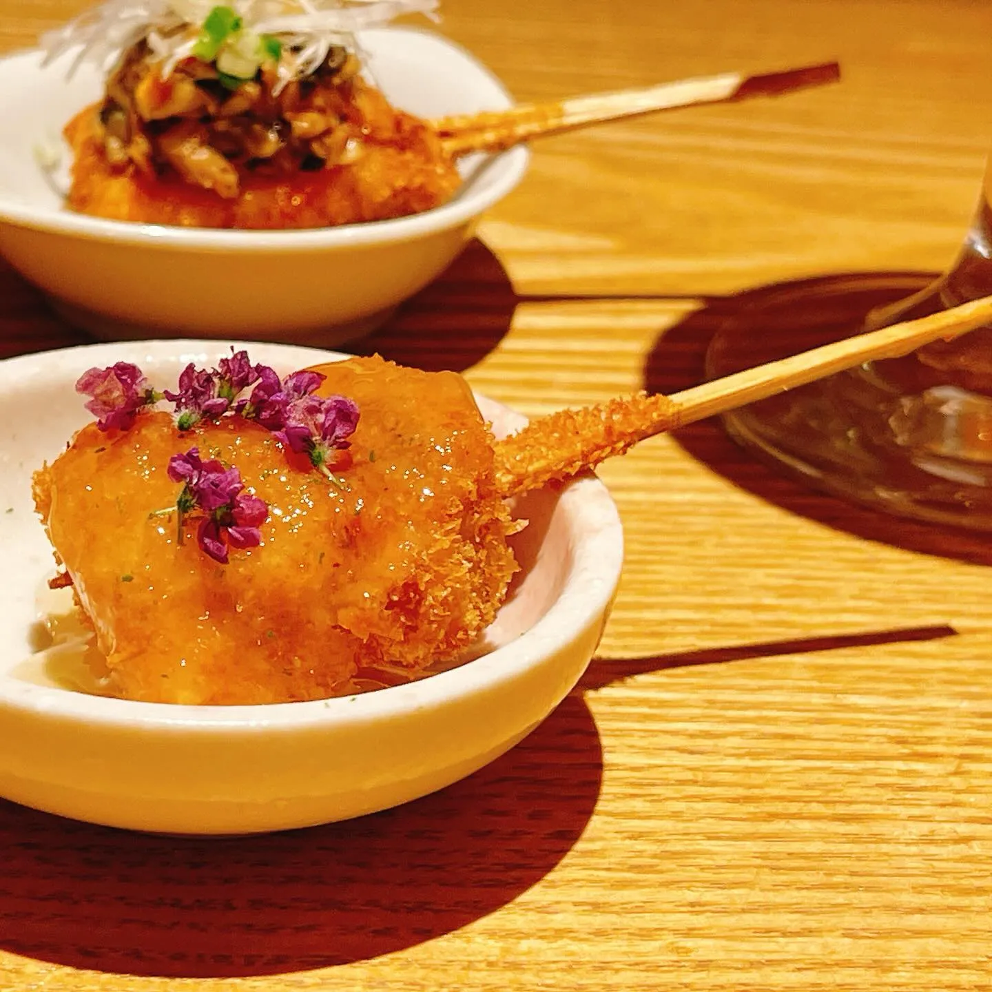熊本黄金鶏とポルチーニのヴァンブランソース 熊本黄金鶏とポルチーニのヴァンブランソースいつもご愛顧いただきありがとうございます9月限定串揚げメニューの一つ旨味がある熊本産の黄金鶏に世界三大キノコの一つであるポルチーニをふんだんに使った…