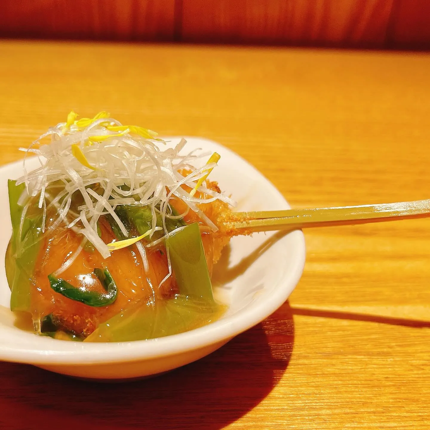 値賀咲いさきと空芯菜のフカヒレ餡かけ 値賀咲いさきと空芯菜のフカヒレ餡かけいつもご愛顧いただきありがとうございます6月限定串揚げメニューの一つ長崎県小値賀町のブランド「値賀咲いさき」初夏〜夏にかけて脂のり抜群になる美味い魚値賀咲…
